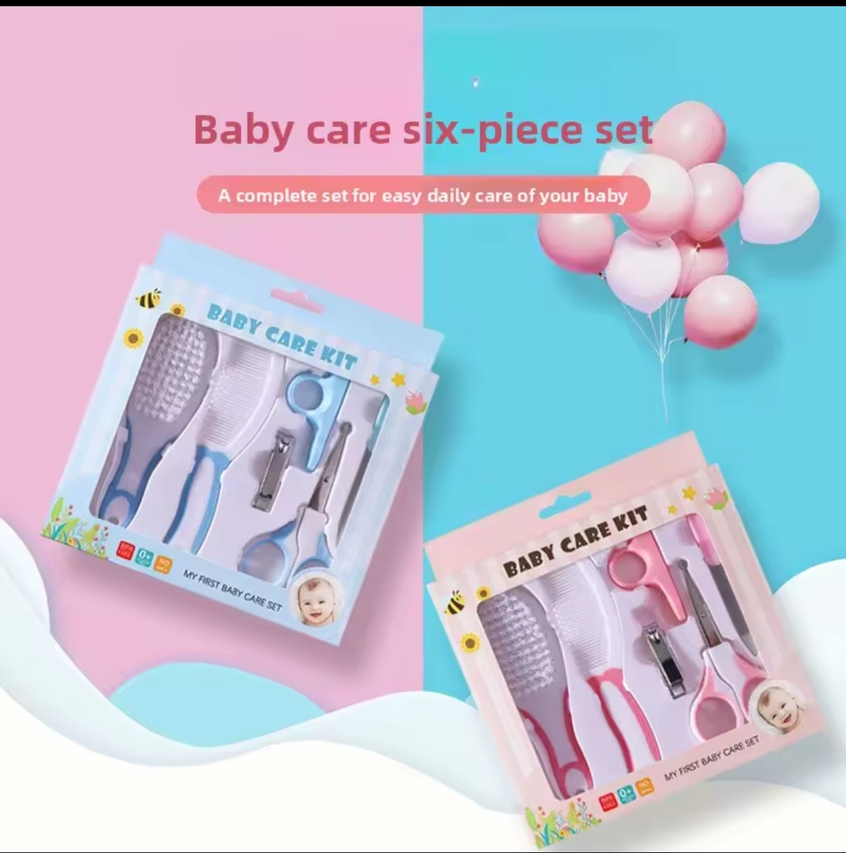6-Piece Baby Care and Grooming Kit with Hair Brush, Comb, Safety Scissors, Nail Clipper, Nail File, and Nail Clipper Sheath