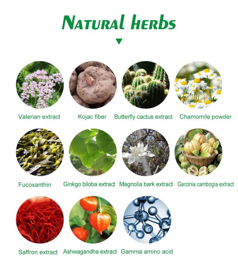 Garcinia Cambogia Extract is known for its ability to inhibit the production of fat in the body and reduce appetite. Green Tea Extract has been shown to increase metabolism and burn fat. Lotus Leaf is a natural diuretic that can help reduce water weight. Cassia Seed can help detoxify the body and improve digestion. Bitter Melon can help regulate blood sugar levels and reduce cravings. Peach Kernel can help promote healthy skin and hair. Chrysanthemum has anti-inflammatory properties and can help reduce stress. Winter Melon Peel can help reduce cholesterol levels and improve digestion.